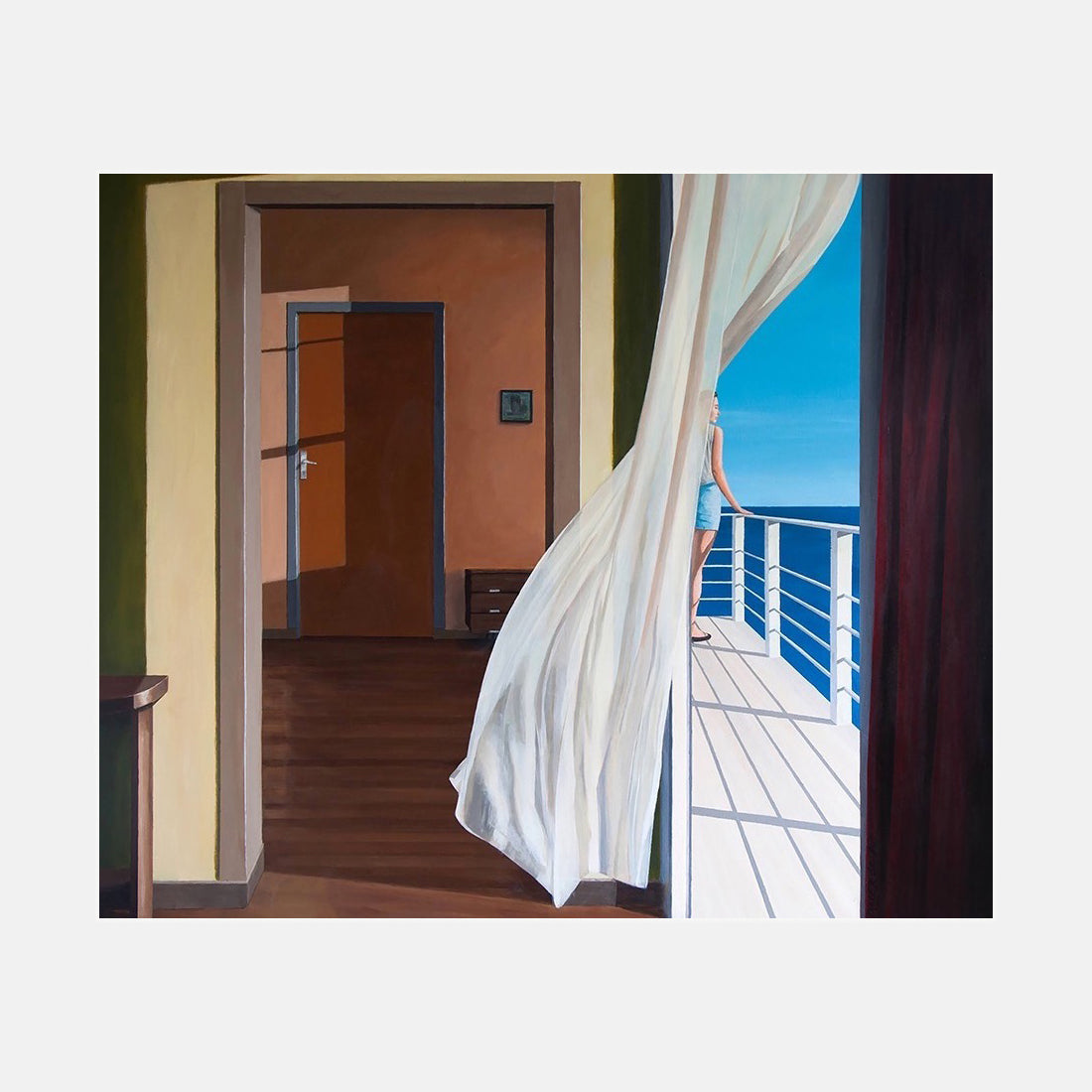 Ces peintures à l'huile épaisses sont des riches pièces réalistes dans le style de Hopper, Levine ou Putnam reproduit à la main. Tout à fait tranquille, pensif et méditatif. Reproduction peinte entièrement à la main. Art original par Darek Grabus.